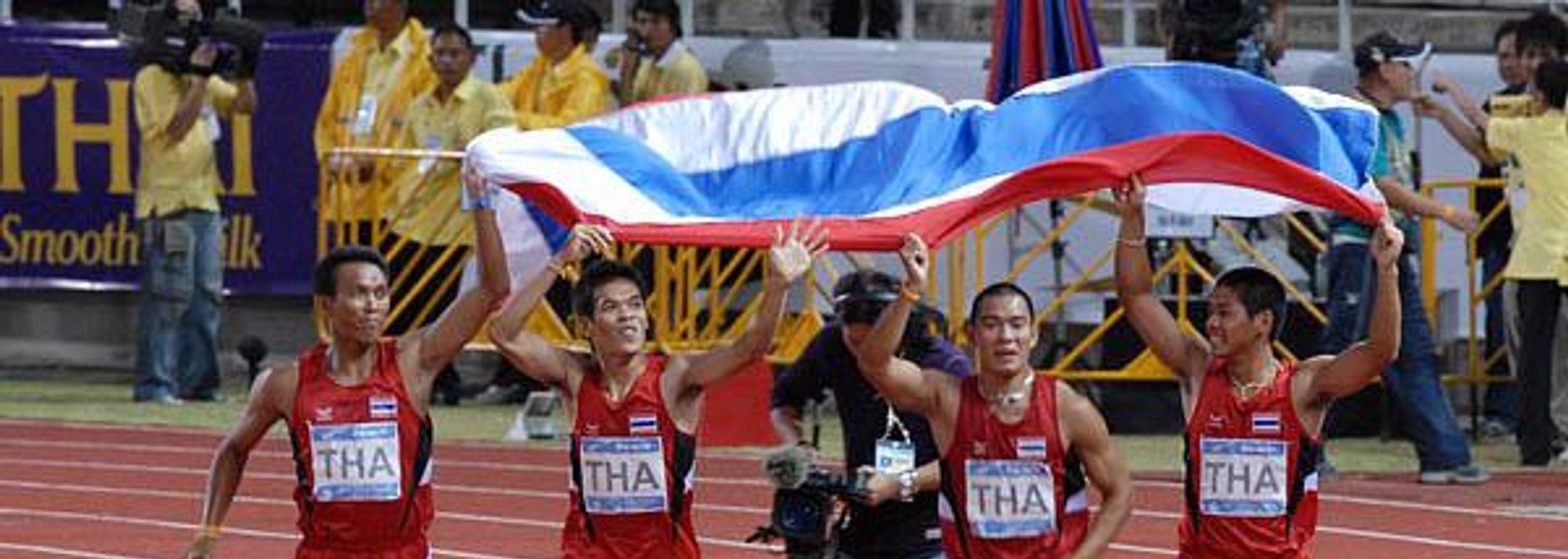 Pirom Autas, Wachara Sondee, Sompote Suwannarangsri and Sittichai Suwonprateep joined efforts won a close 4x100m final over the South African squad to give the host country its first athletics title in the 48-year history of the Games.