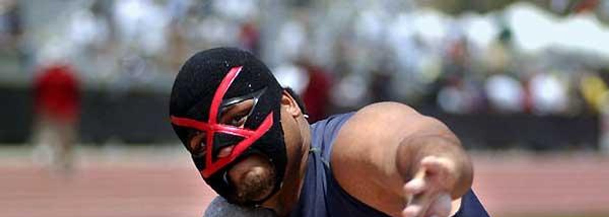 USA's Reese Hoffa competes as the 'Unknown Shot Putter' at the 2003 Home Depot Invitational (© Kirby Lee)