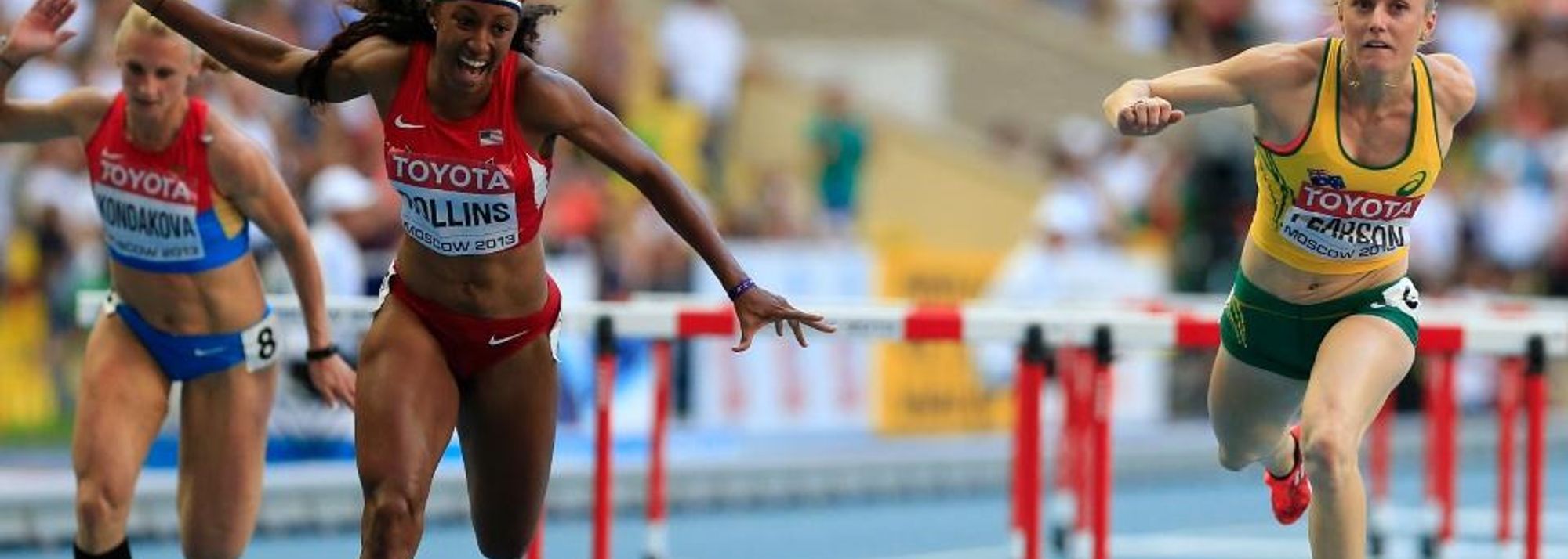 Sally Pearson and Brianna Rollins in the womens 100m Hurdles Final at the IAAF World Athletics Championships Moscow 2013 (© Getty Images)