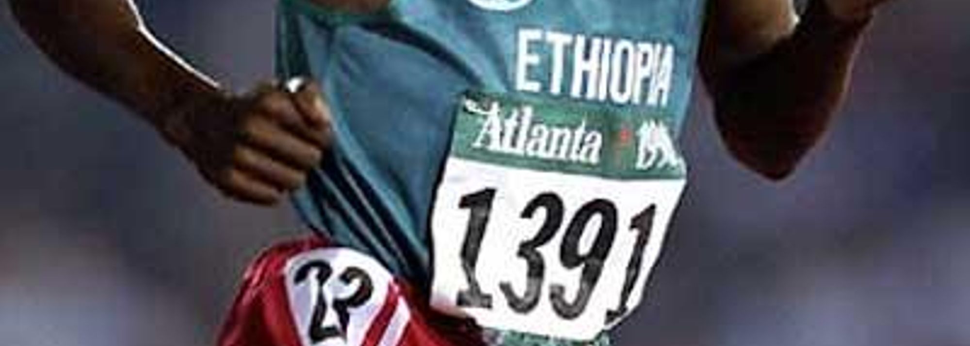 Haile Gebrselassie running in the 1996 Olympic 10,000m final. The number he is shown wearing is currently up for auction (© Getty Images)