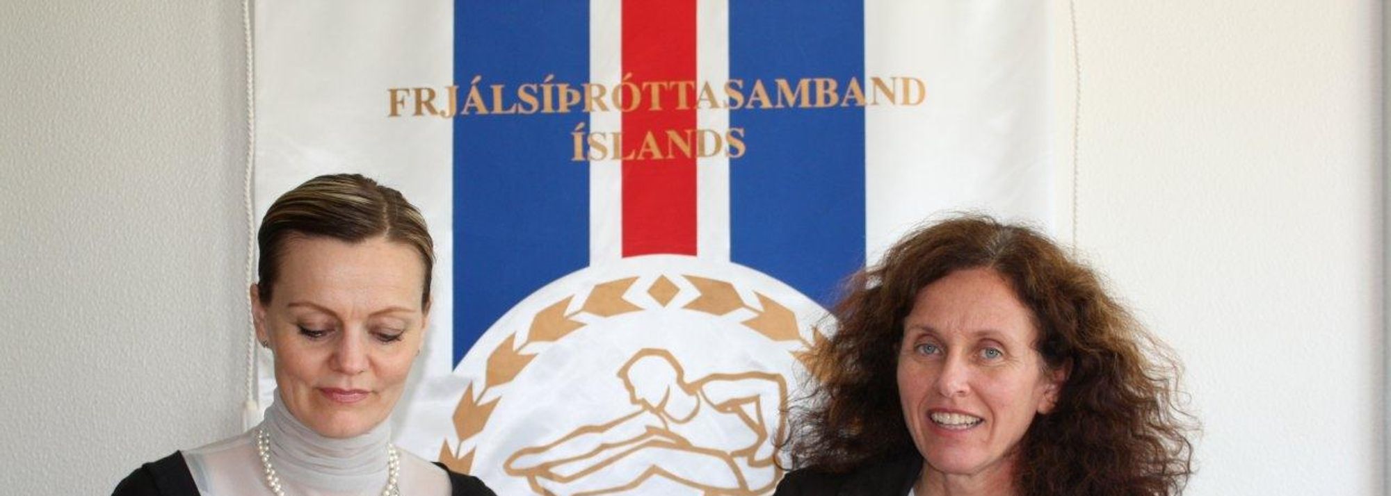 In the accompanying photograph the ISL President, Ms. Asdis Halla Bragadottir on the left and Ms. Thordis Gisladottir, chair of RU Physical Education Department sign the agreement on Tuesday 26th May 2009.