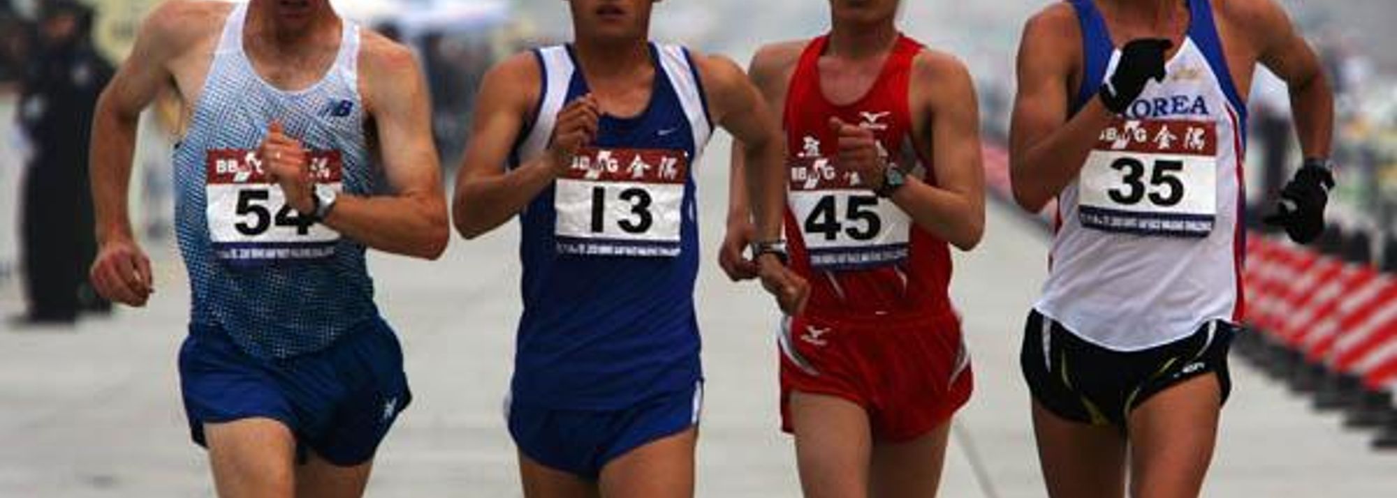 Tony Sargisson (NZL), Gao Lianzuo (CHN), Zhang Jiawei (CHN) and Yim Junghyun (KOR) in action in the 50km Race Walk in Beijing (© Getty Images)
