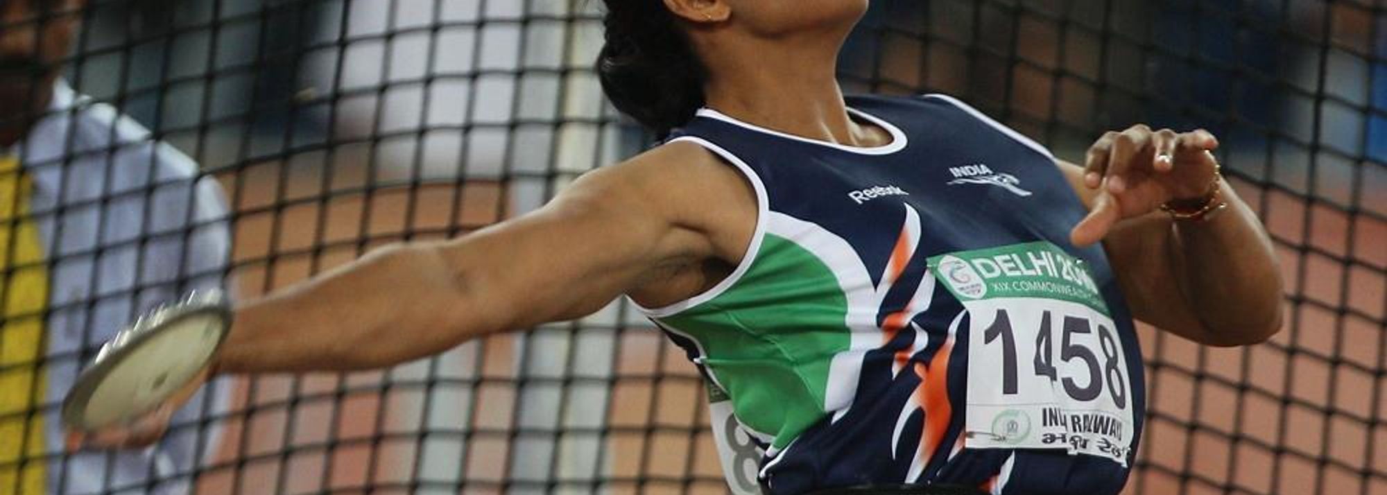Gold medallist Krishna Poonia leads a discus throw sweep for India in Delhi (© Freelance)