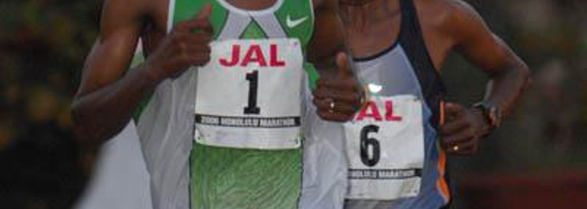 Jimmy Muindi leads Ambesse Tolosa at the 2006 Honolulu Marathon (© Courtesy of Honolulu Marathon)