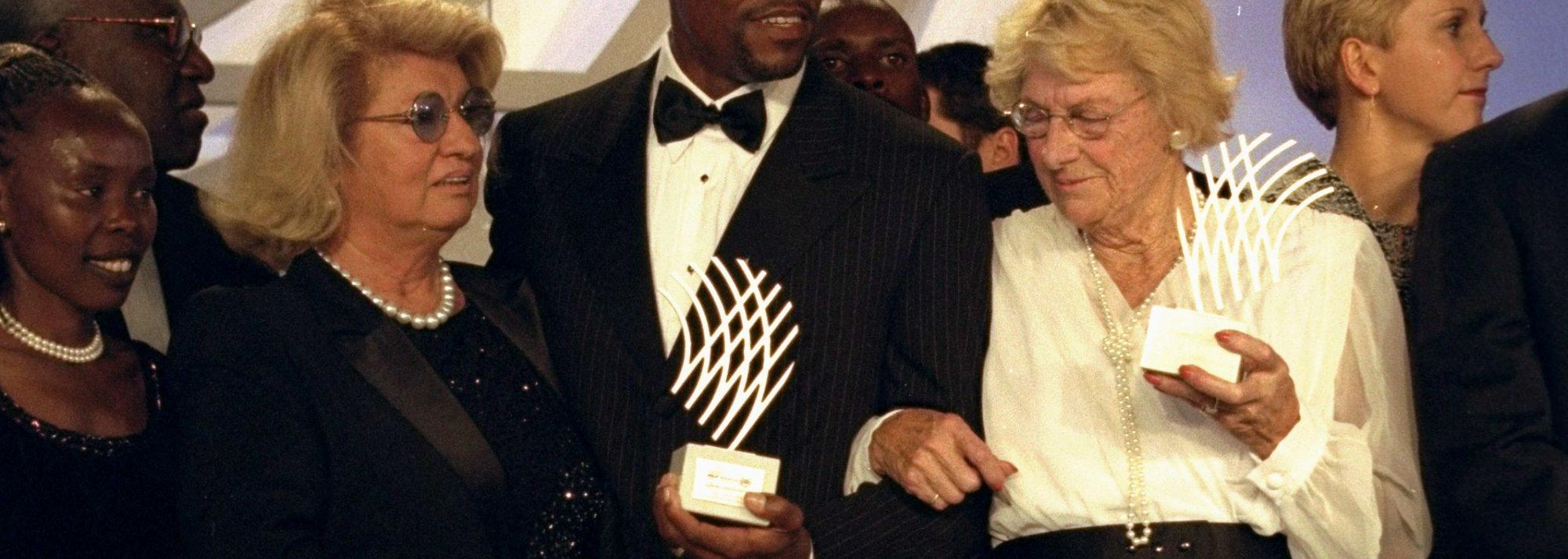 21 Nov 1999: Giovanna Nebiolo, with Athletes of the Century Carl Lewis and Fanny Blankers-Koen at the IAAF Gala in the Salle D''Or of the Grand Hotel in Monte Carlo, Monaco. (© Getty Images)