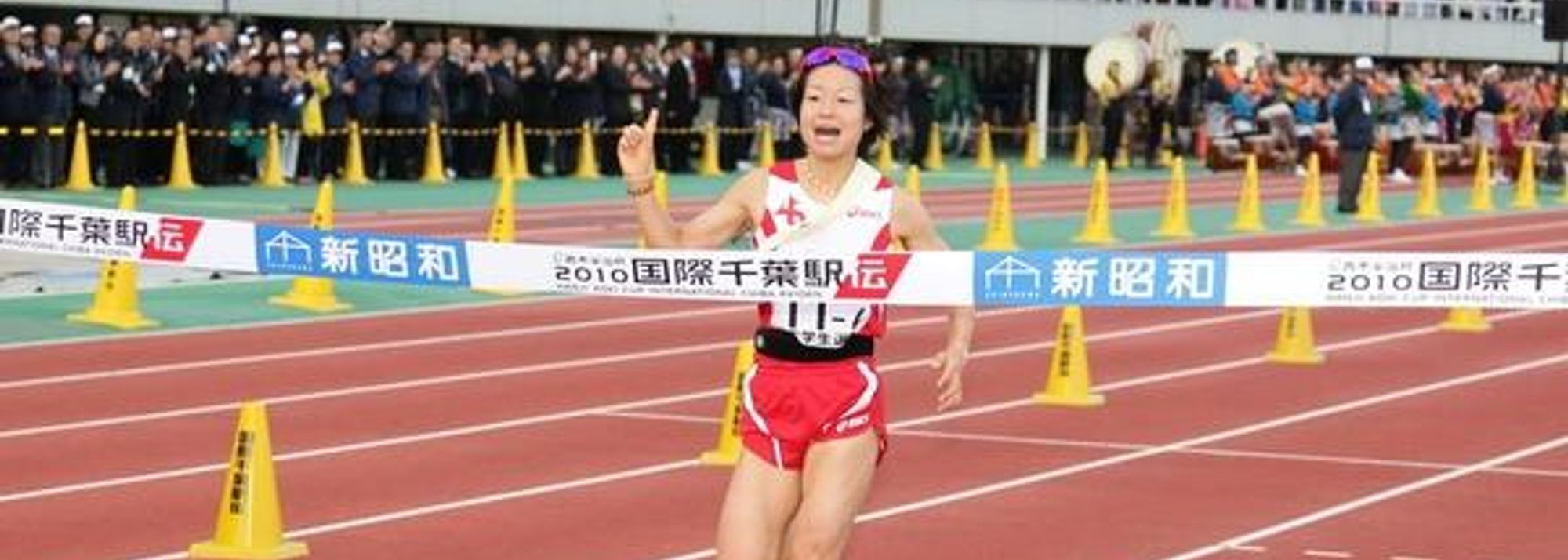 Hanae Tanaka holds on to anchor the Japanese Collegiate team to its first ever victory at the Chiba Ekiden (© Kazutaka Eguchi/Agence SHOT)