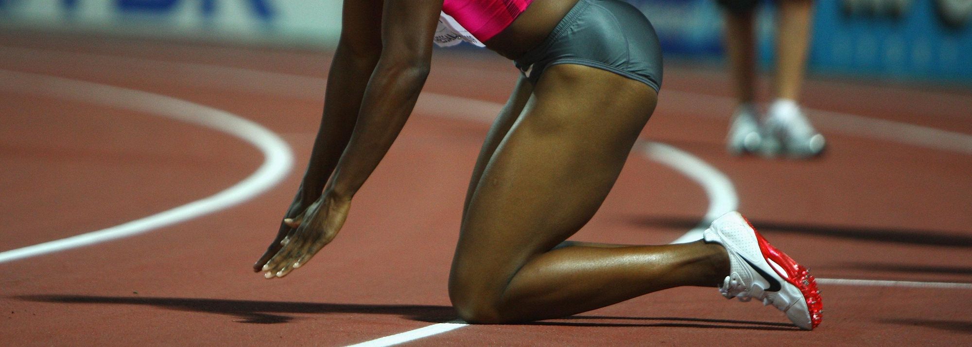 Carmelita Jeter collapses in disbelief after becoming the second fastest woman in history (© Getty Images)