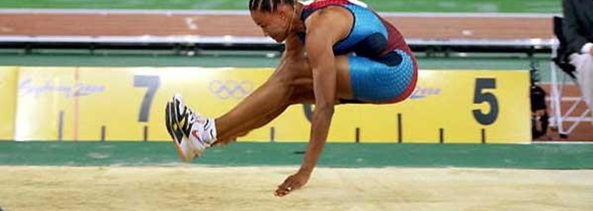 Marion Jones competing in the Olympic Long Jump final in Sydney 2000 (© Getty Images)