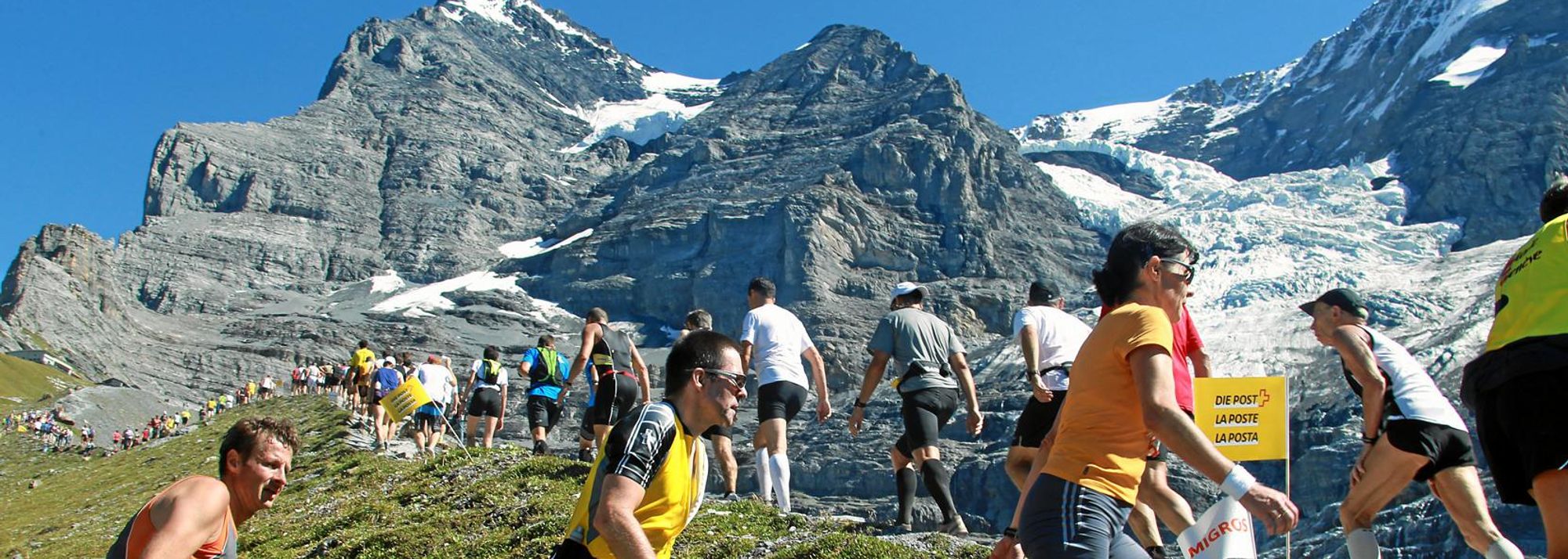 The Jungfrau Marathon is one of the best known mountain marathons in the world, in full view of the famous Eiger, Mönch, and Jungfrau mountains.
