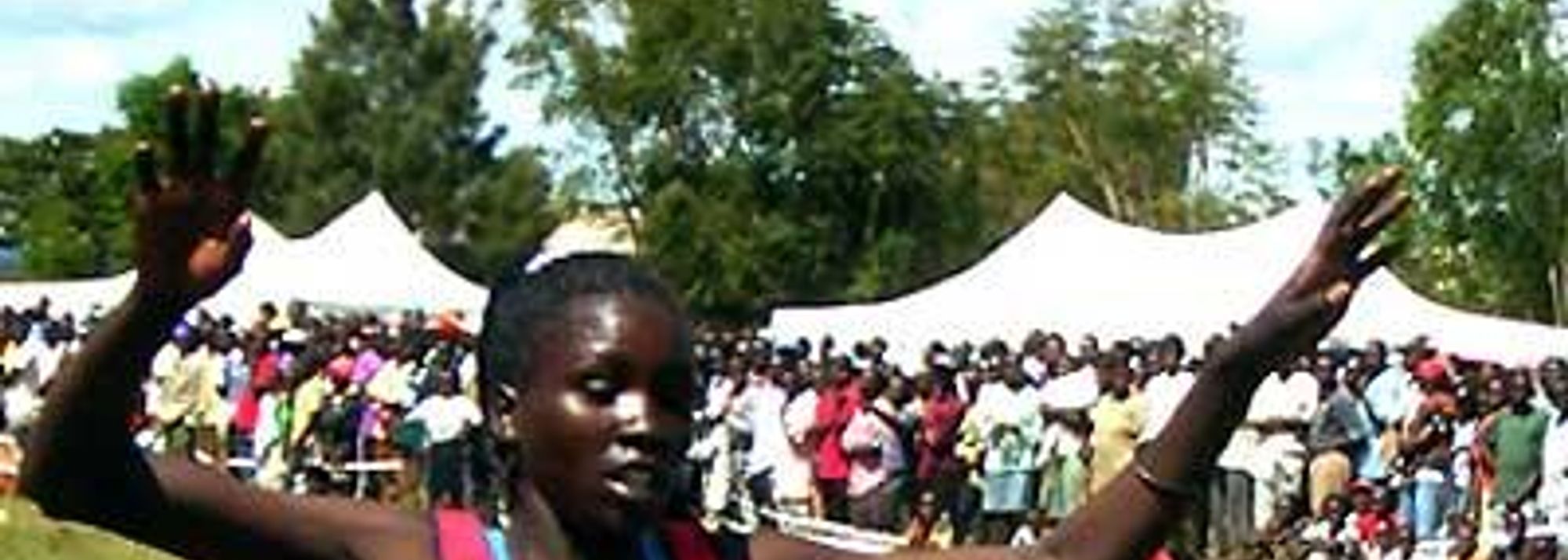 Fridah Domongole raises hands after winning the 8km senior women race, Tuskermatt Wareng xc (© David Macharia)