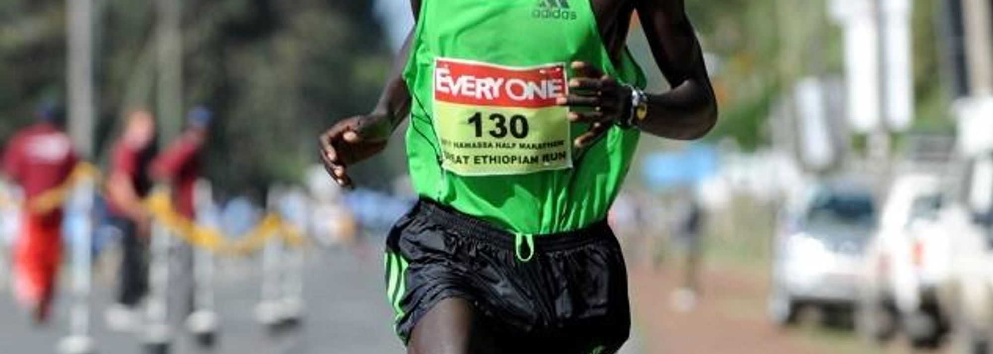 Kiplimo Kimutai of Kenya set a 1:03:10 course reared at the Every One Half Marathon in Hawassa, Ethiopia on Sunday (1).