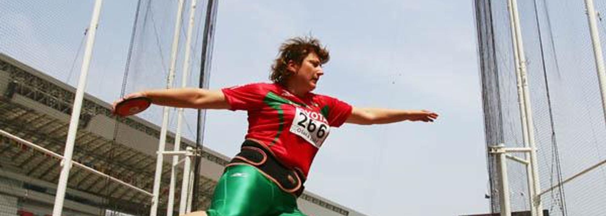 Iryna Yatchenko of Belarus in the Discus Throw qualification round (© Getty Images)