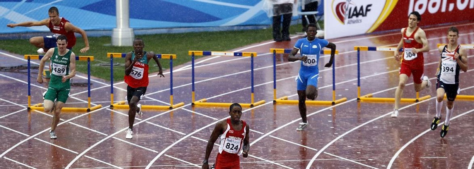 Jehue Gordon powers through the rain to comfortably make it into the 400m Hurdles final (© Getty Images)