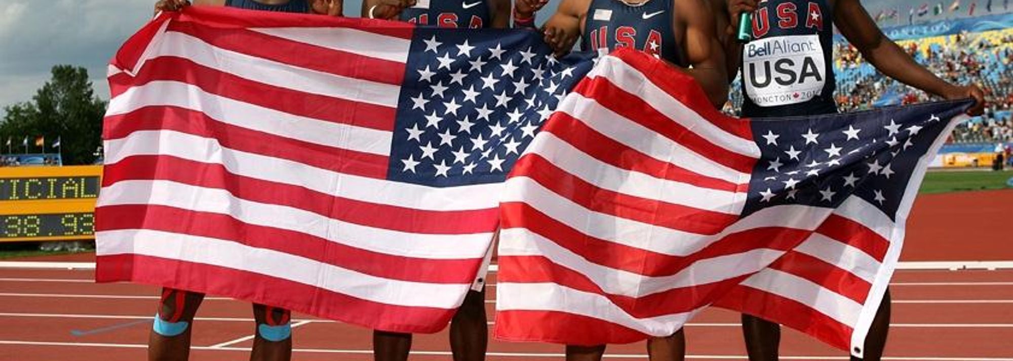 Team USA celebrate their gold medal in the men's 4x100m in a world junior leading 38.93 (© Getty Images)