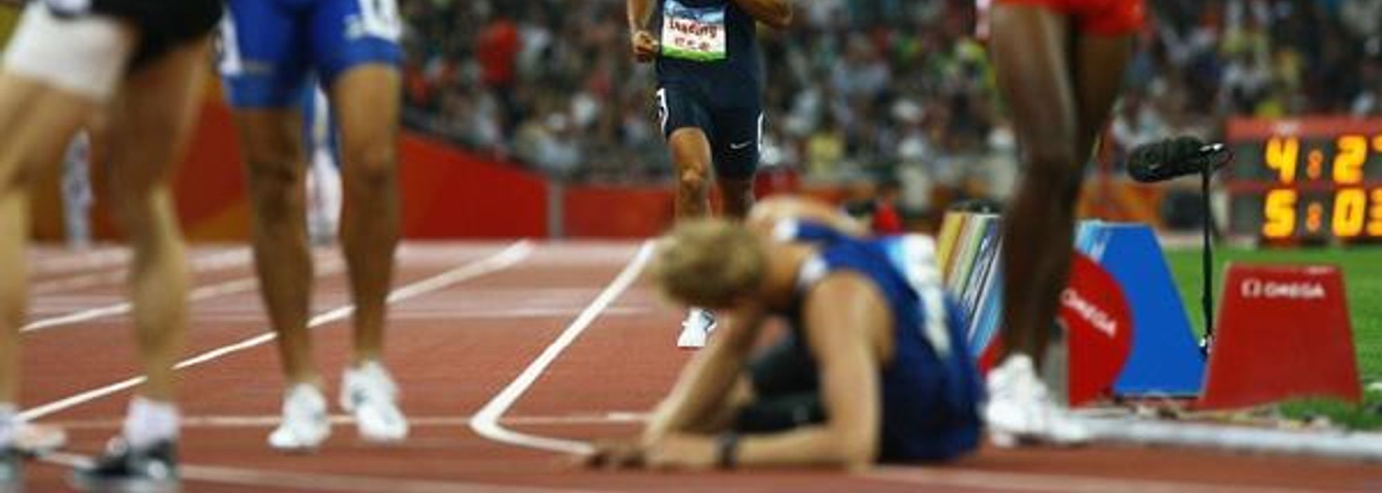 Bryan Clay jogs home last in the 1500m, but is the overall winner of the decathlon with a score of 8791 (© Getty Images)