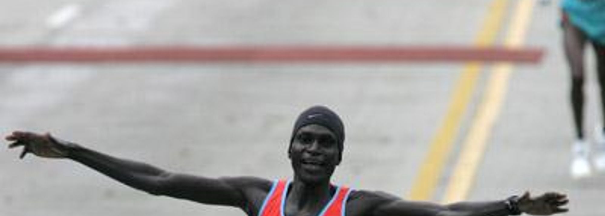 All smiles - Robert Cheruiyot winning the Chicago Marathon (© Victah Sailer)