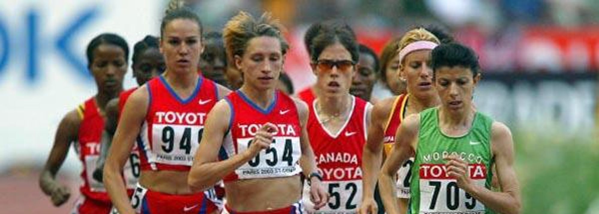 Zahra Ouaziz of Morocco leads the pack in the 5000m (© Getty Images)