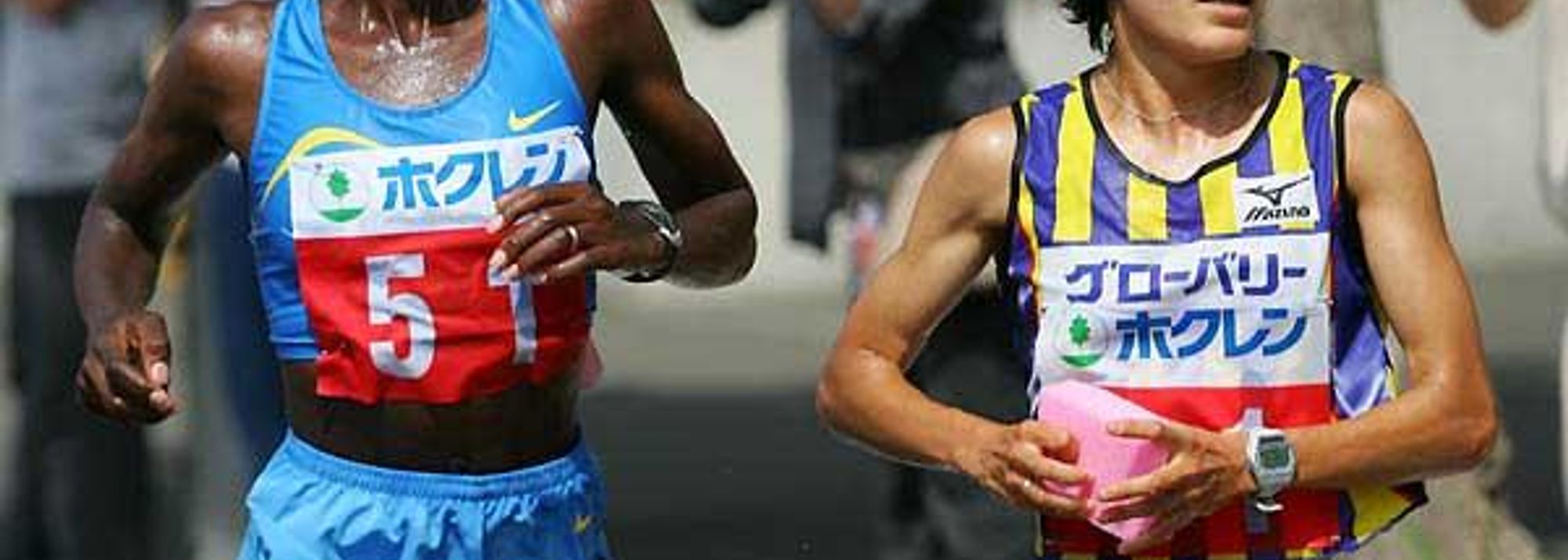 Yet Iwamoto wasn’t about to give up, and caught Noguchi just before they hit the home straight. Iwamoto finished second 21 seconds behind the winner Nderba, while Noguchi was another second behind. “It was a hard race. My leg felt heavy,” said Noguchi after the race. “I am not happy because I lost the race, but I was able to find out what need to done.”