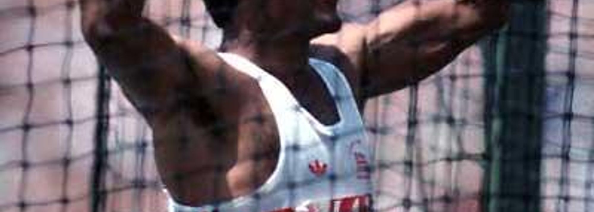 Daley Thompson (GBR) roars his approval from the Discus cage in Los Angeles (© Getty Images)