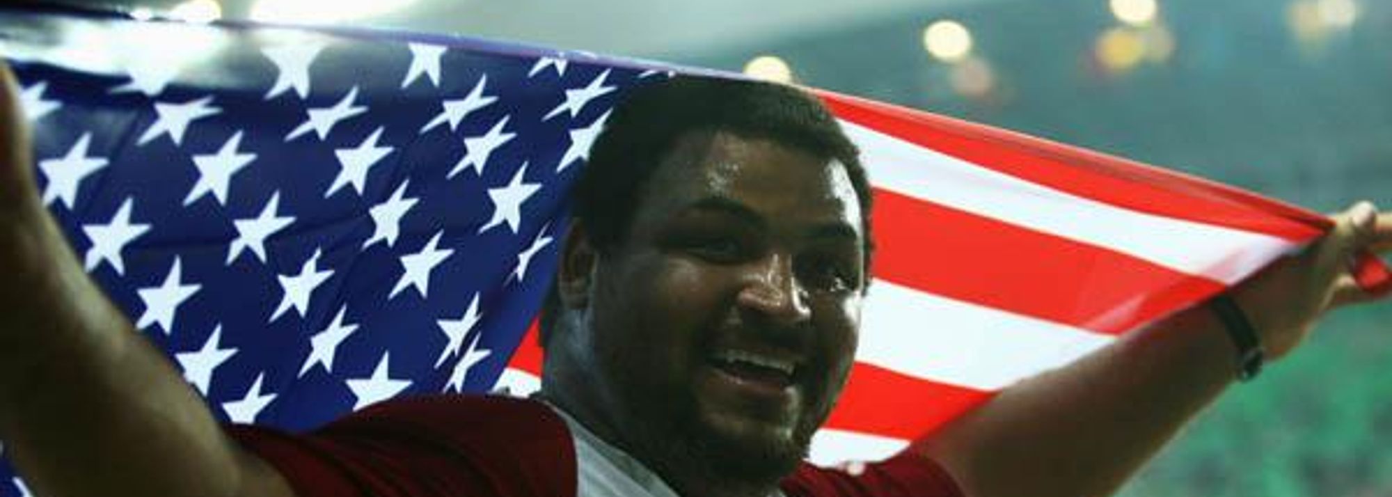 Reese Hoffa of the US celebrates winning the men's Shot Put final (© Getty Images)