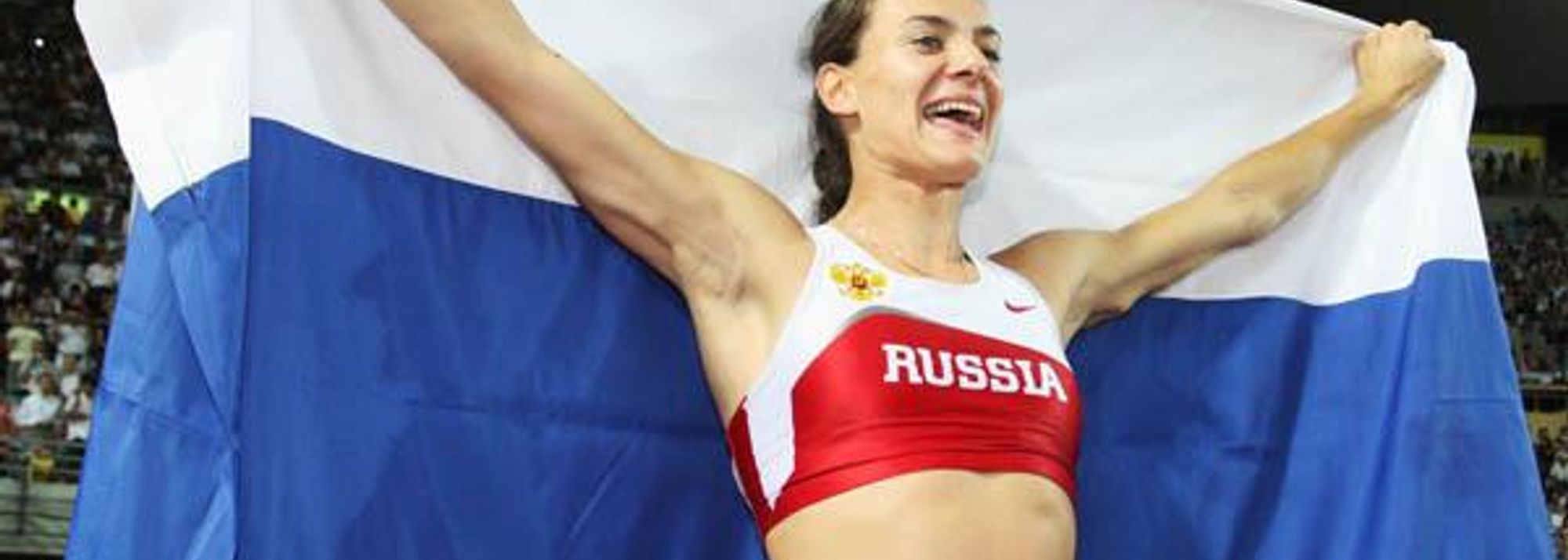 Yelena Isinbayeva celebrates defending her World title in Osaka (© Getty Images)