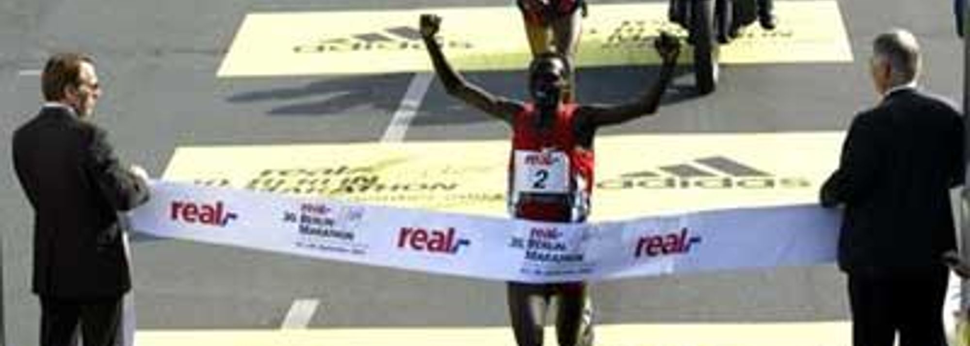 Paul Tergat crosses the finish line in Berlin (© Lisa Coniglio)
