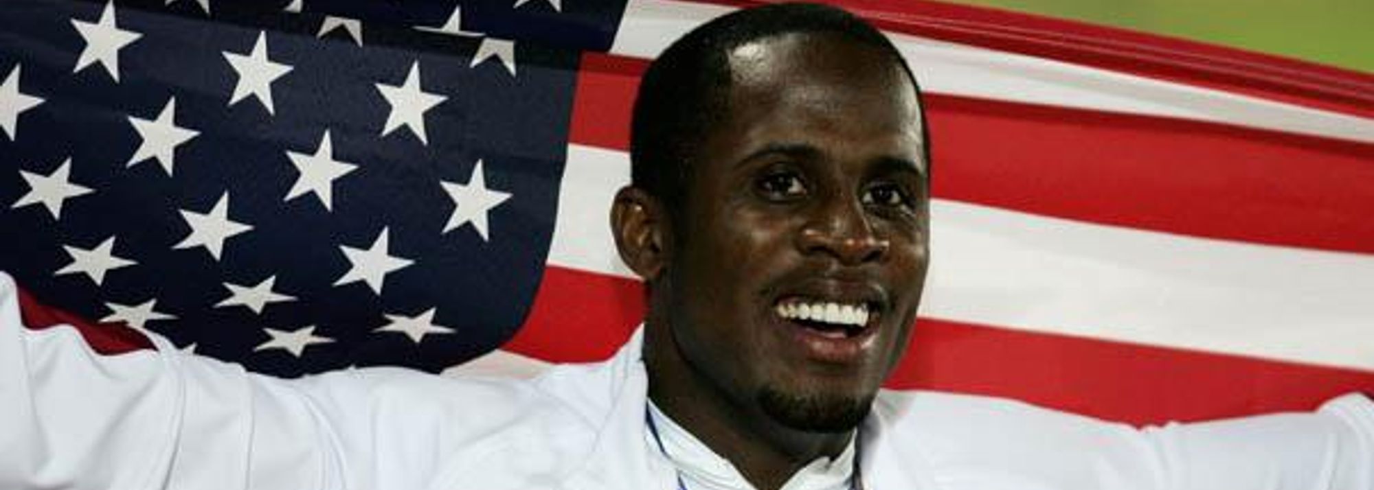 Dwight Phillips celebrates winning gold in the men's Long Jump (© Getty Images)