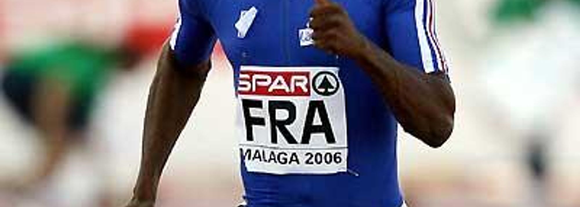 Ronald Pognon (FRA) powers away to 100m win in Malaga (© AFP / Getty Images)