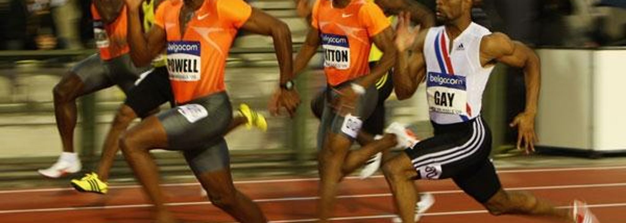 Asafa Powell beats Tyson Gay in the 100m with a time of 9.90 (© Getty Images)