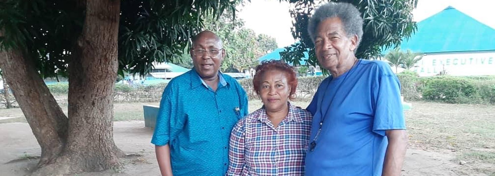 Filbert and Anna Bayi with Ron Davis at the Bayi Multi Sports Complex in Tanzania