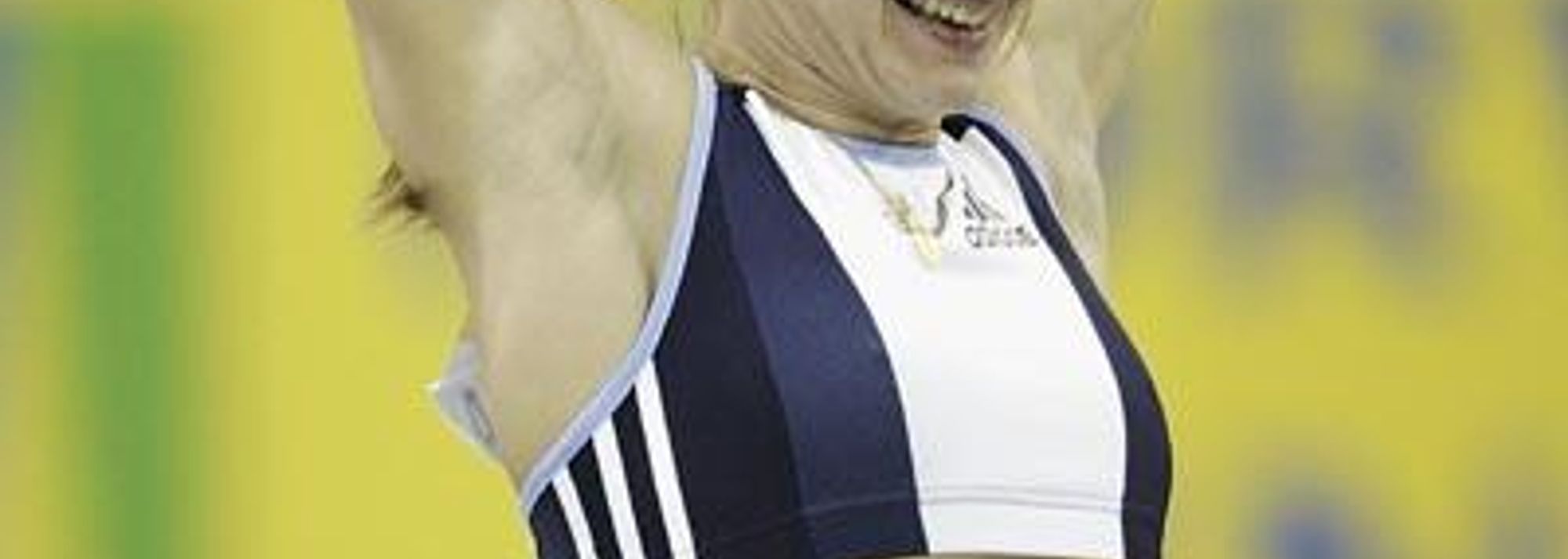 Yelena Isinbayeva celebrates setting a new World Indoor record in Birmingham (© Getty Images)