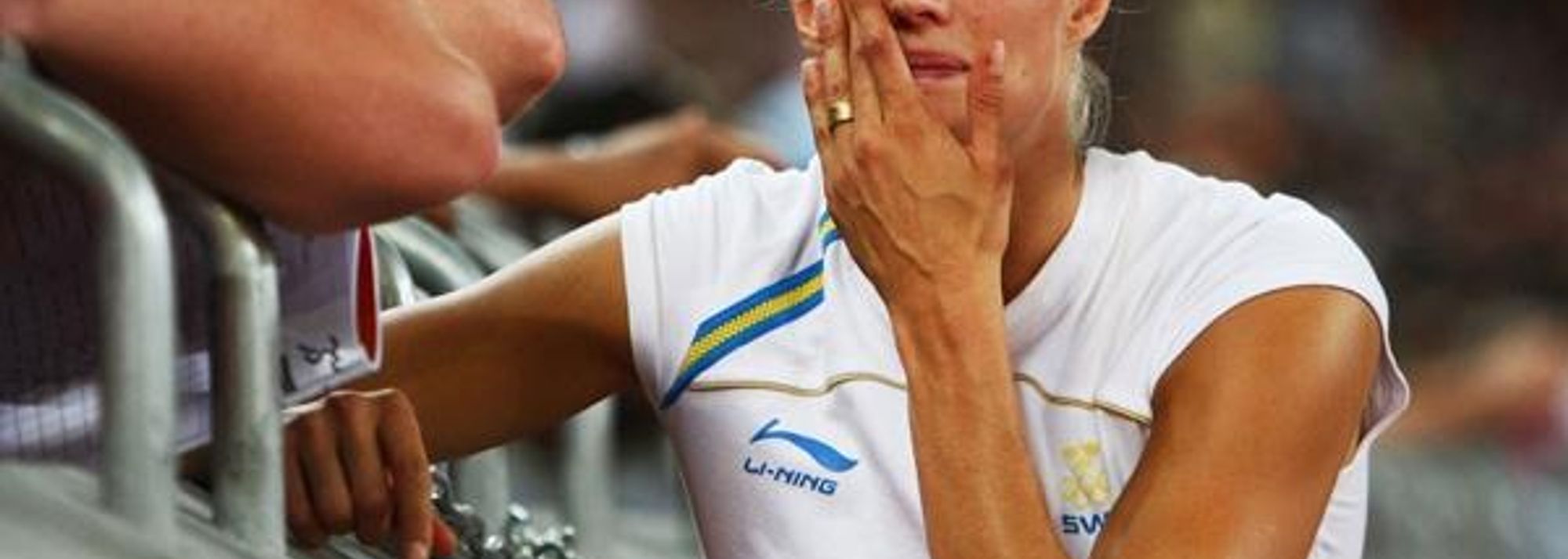 Saison beendet. Die Schwedin zog sich am Montag (6. Juli) beim Meeting in Karlskrona (Schweden) eine Verletzung der Kniesehne zu, die schwerer ist als zunächst angenommen.