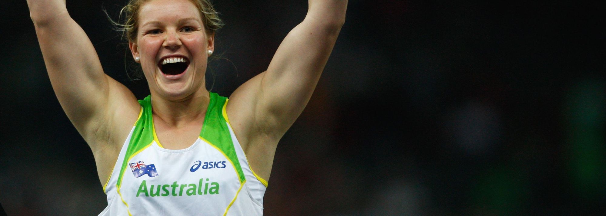 Dani Samuels of Australia looks thrilled to win the women's Discus at the 12th World Championships in Athletics in the Berlin Olympic Stadium (© Getty Images)