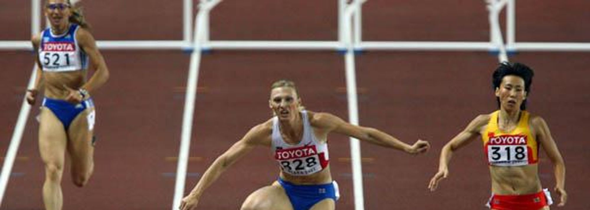 Yuliya Pechonkina of Russia on her way to victory in her 400m Hurdles semi final in Osaka 2007 (© Getty Images)