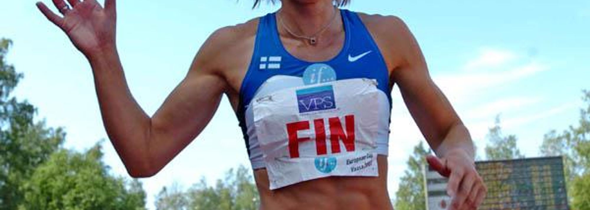 Johanna Manninen after her PB 11.27 in Vaasa (© Hasse Sjogren)
