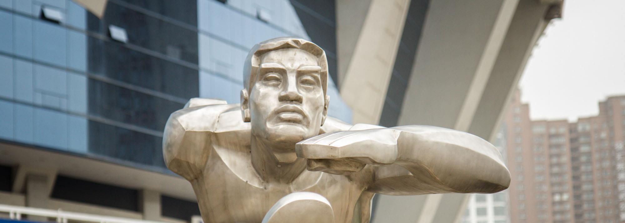 Hurdler sculpture at Shanghai Stadium (© Bob Ramsak)