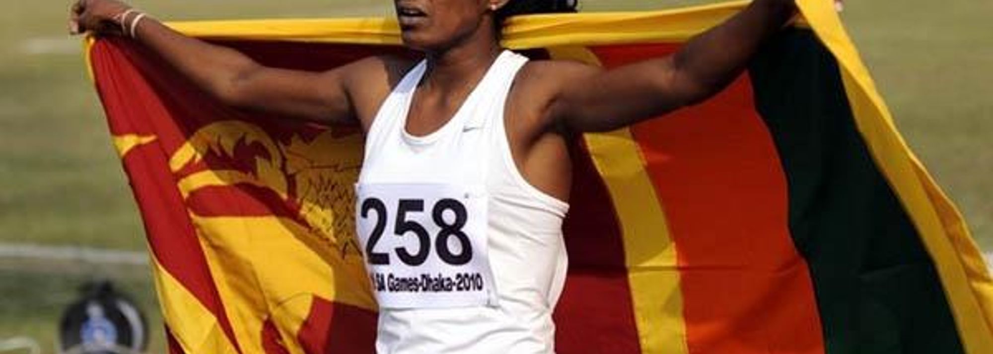 Chandrika Subashini of Sri Lanka celebrates winning a 200/400 double at the South Asian Games (© Local Organisers)