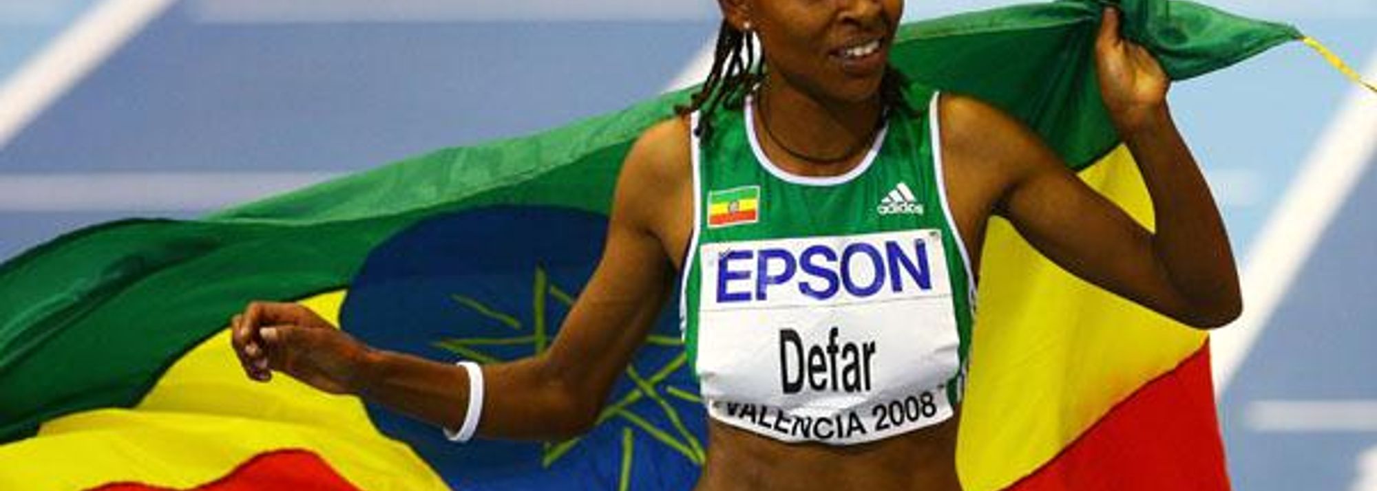 Meseret Defar celebrates her third successive world indoor 3000m gold (© Getty Images)