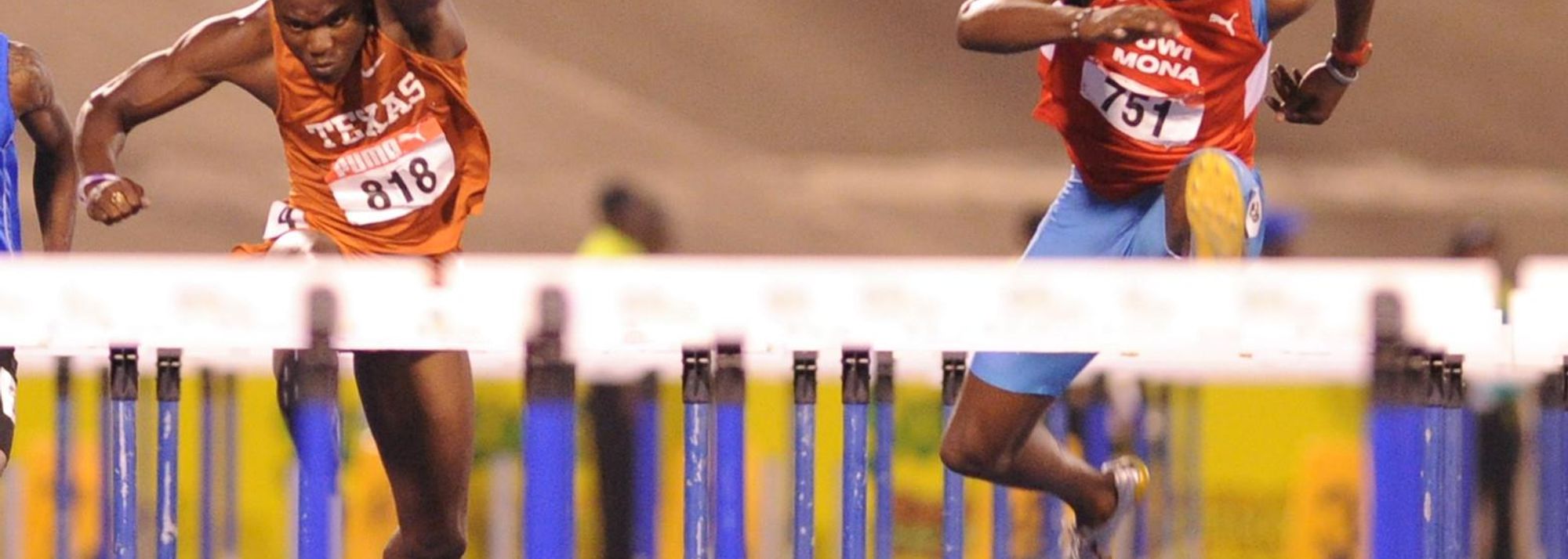 Hansle Parchment (r) on the way to his victory over Andrew Riley at Jamaican trials (© Anthony Foster)