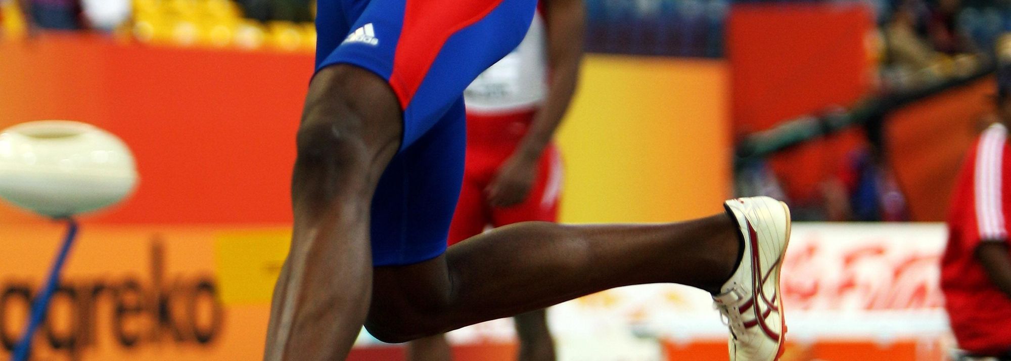 Teddy Tamgho of France on his way to the World Indoor Triple Jump record in Doha (© Getty Images)
