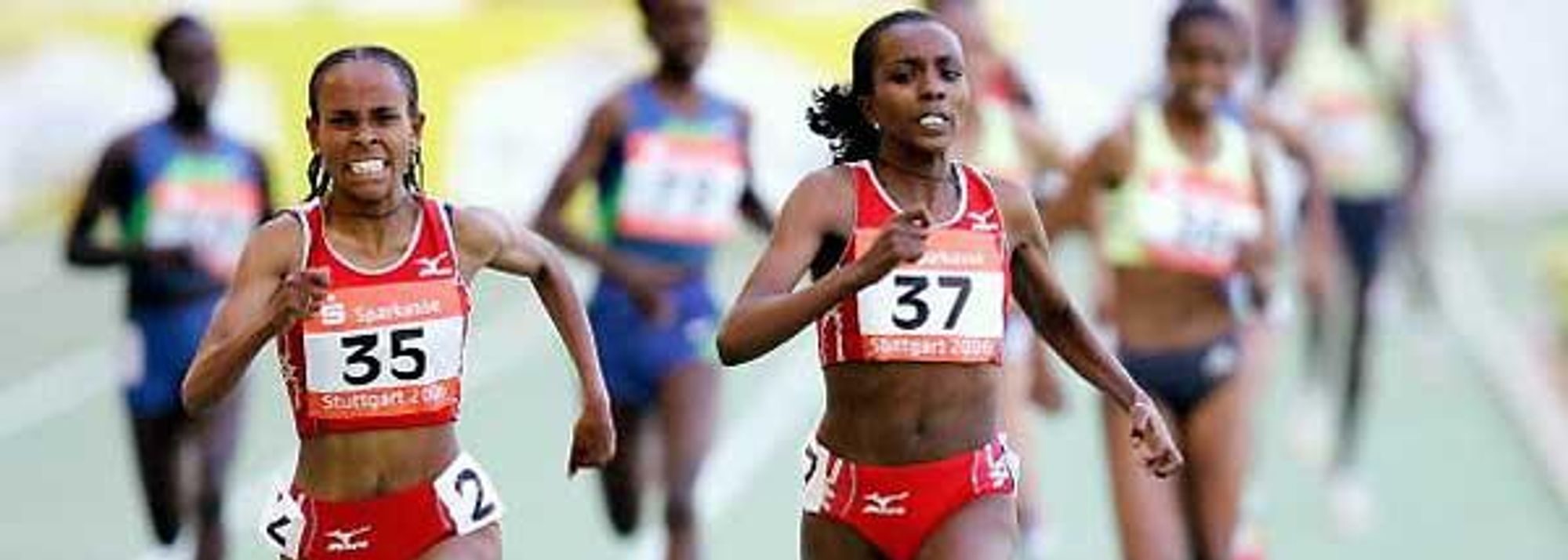 Defar (l) and Dibaba (r) duel in Stuttgart over 5000m (© Getty Images)