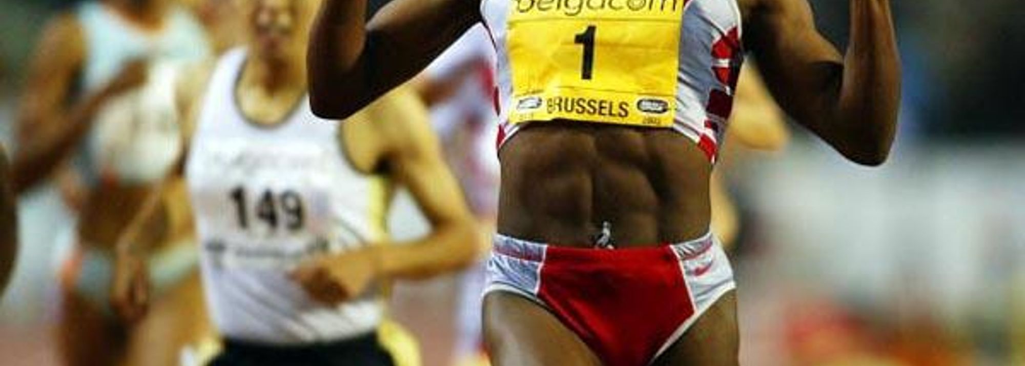 Maria Mutola victorious in the 800m in Brussels (© Getty Images)