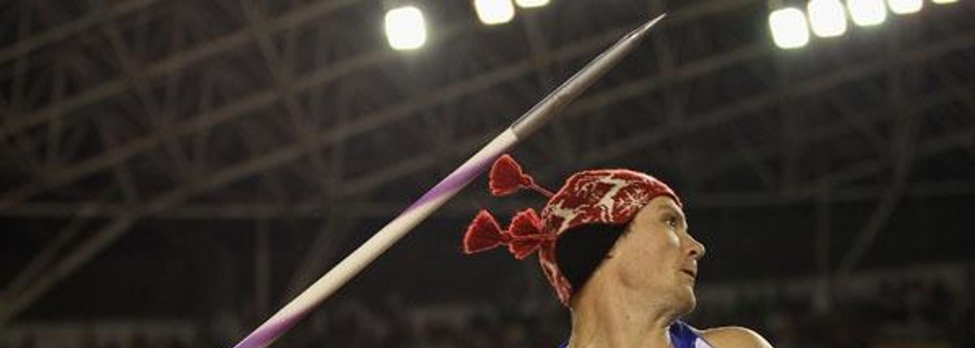 Andreas Thorkildsen throwing with his earflap wool hat in Split (© Getty Images)