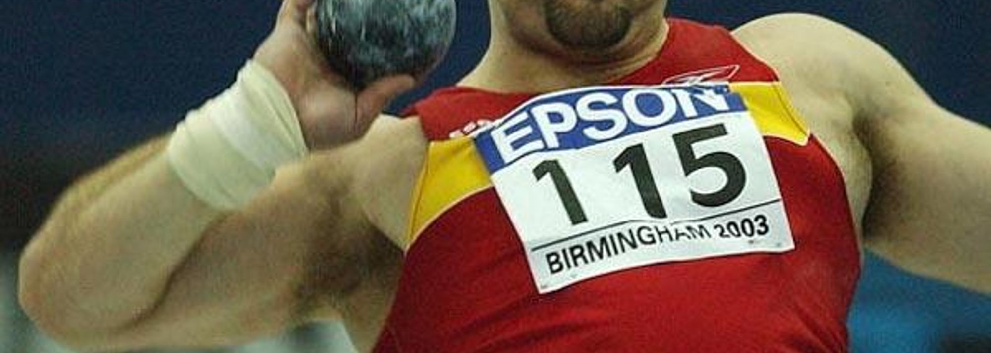 Manuel Martinez (ESP) in action in the men's shot put final (© Getty Images)