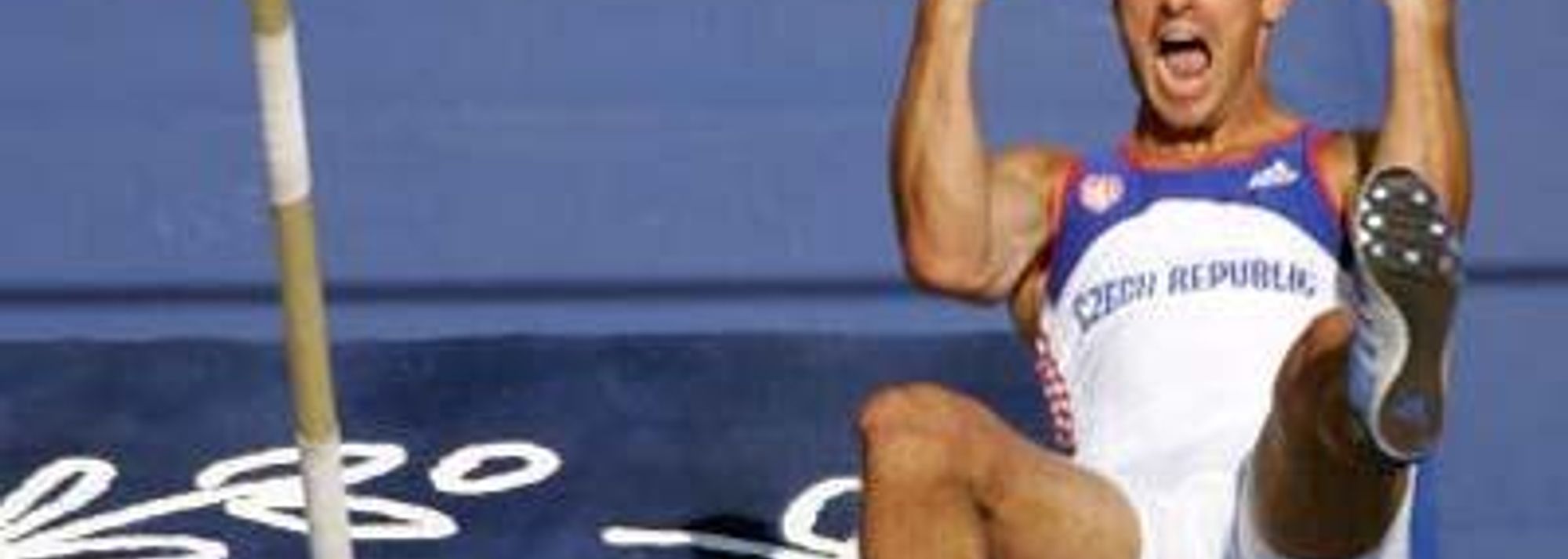 A jubilant Roman Sebrle celebrates clearing 5.00m in the Decathlon's Pole Vault (© Getty Images)