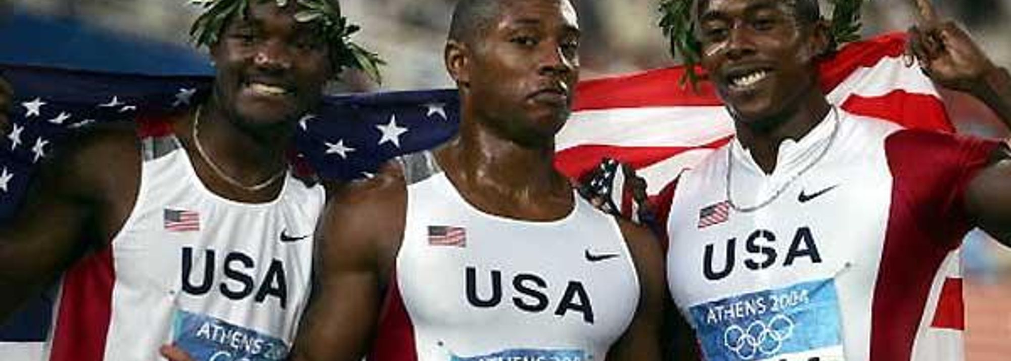 Olympic 200m - USA sweep; Gatlin (b), Williams (s), Crawford (g) (© Getty Images)