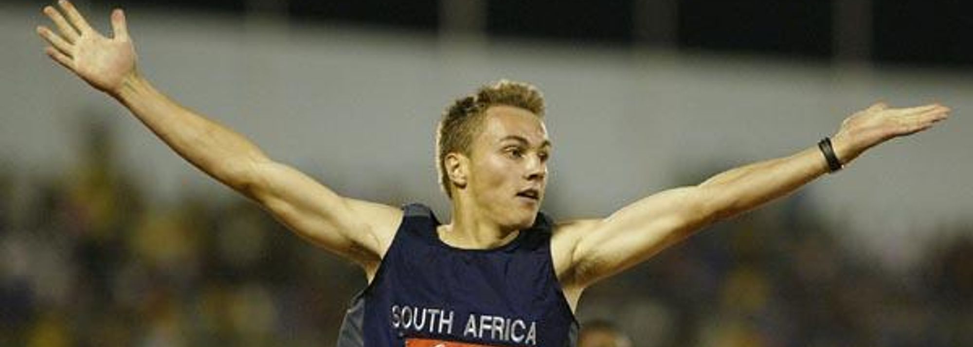 At that stage he had never broken 50 seconds for the event but he exhibited his exceptional class by sprinting away from his opponents in the final straight. It all happened on the day before his 17th birthday. 2003 was his final school year and he took matters very easy except for one major surprise when he won the South African senior title from the outside lane, pipping national record holder, Llewellyn Herbert at the tape. His best time during the year was 49.22.