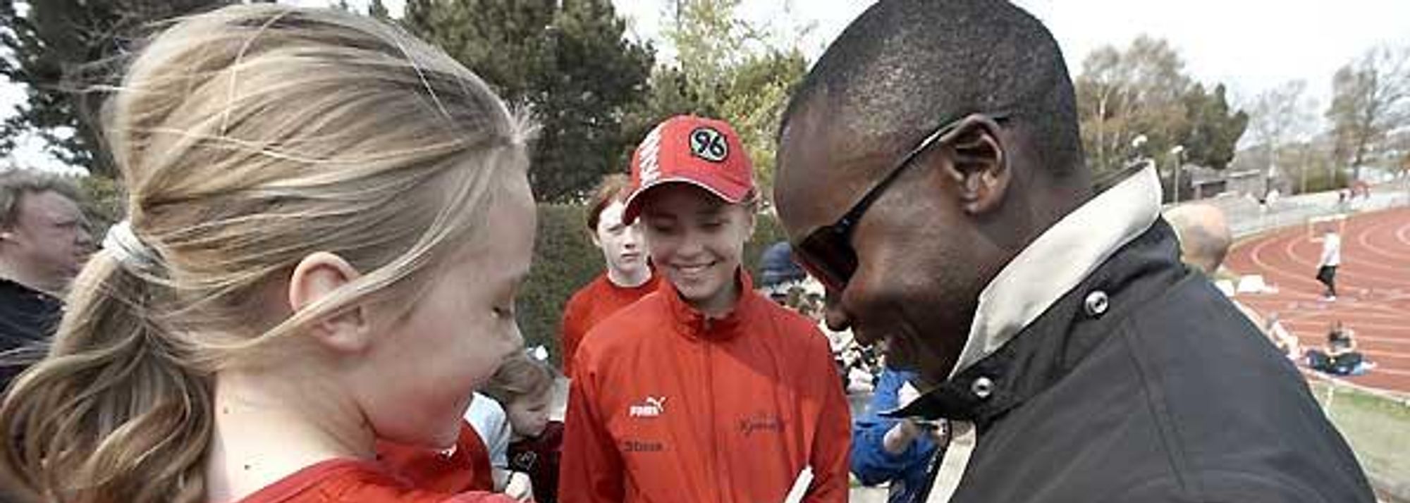 Warm weather and a clear sky dominated the day, but the children, eager to compete after a long winter, almost forgot about their running, jumping and throwing, when one of their athletic heroes arrived. On World Athletics Day, IAAF Ambassador Wilson Kipketer took the time to meet the youth of Danish athletics, and within minutes he was surrounded by children, all wanting an autograph on their shoe, their vest or their bib.