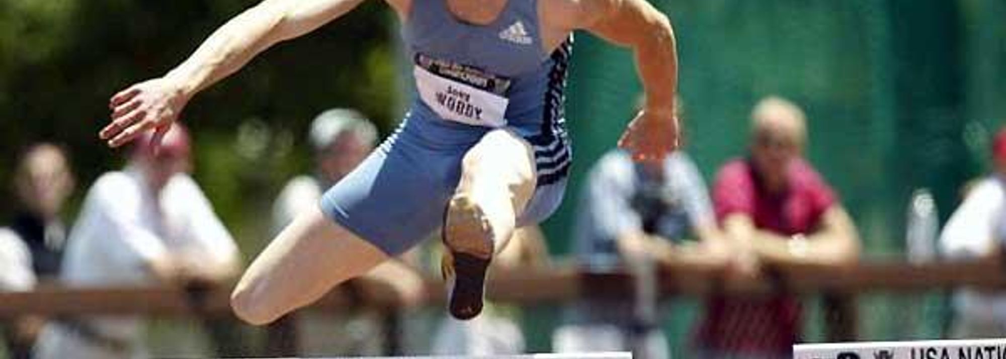 Joey Woody clears a hurdle in the 2003 US nationals (© Getty Images)