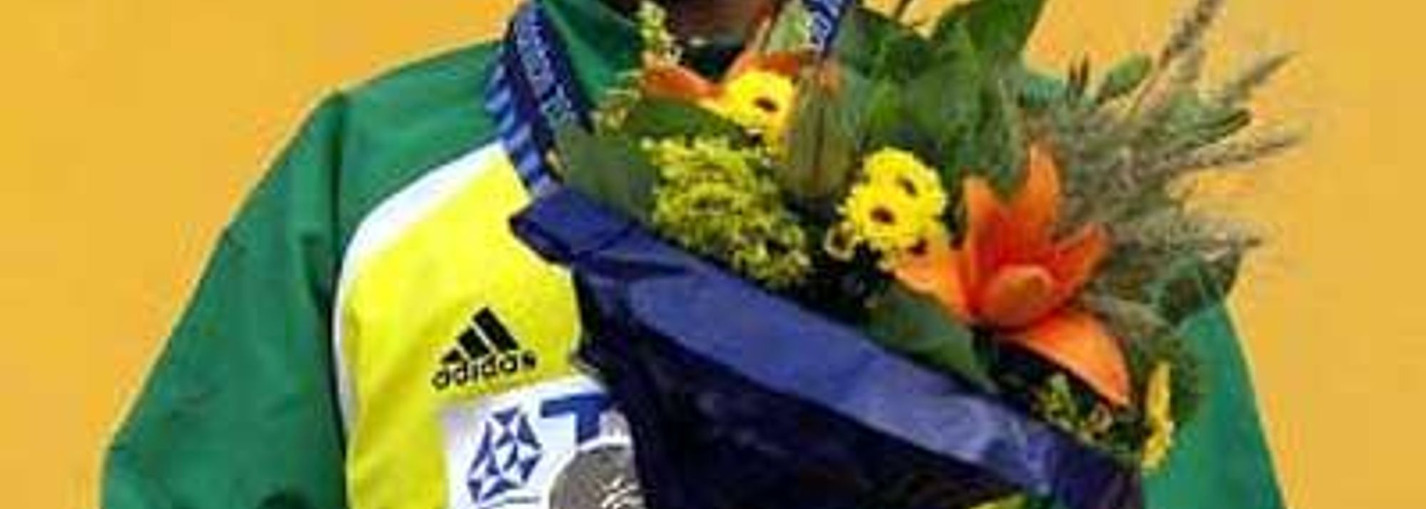 Haile Gebrselassie with Edmonton 10,000m bronze (© Getty Images)